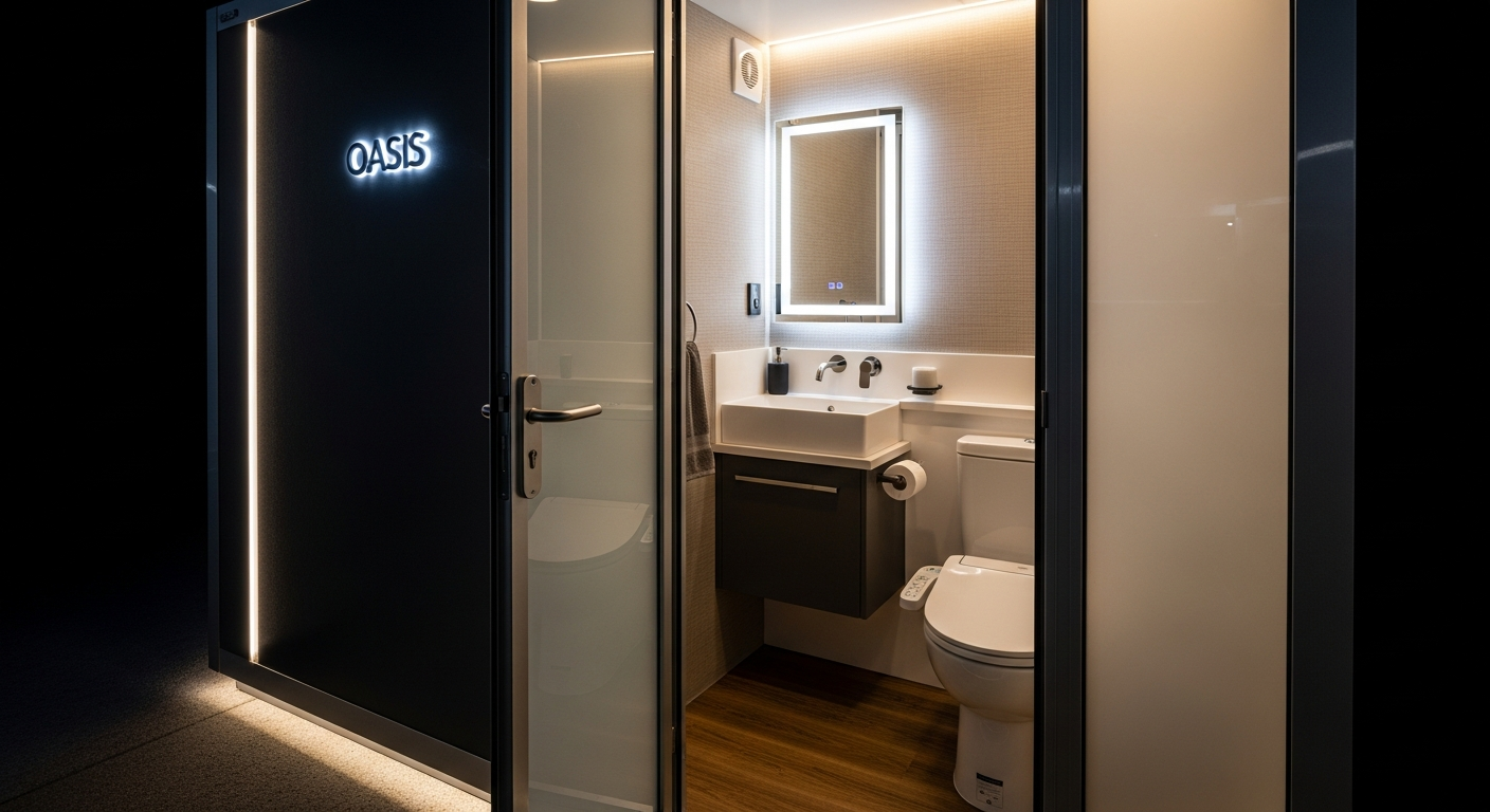 Sophisticated LED lighting systems create ambiance while providing excellent illumination for grooming and personal care activities. These energy-efficient fixtures offer warm, flattering light that makes guests look and feel their best. The lighting design eliminates harsh shadows and unflattering angles common in standard portable facilities.