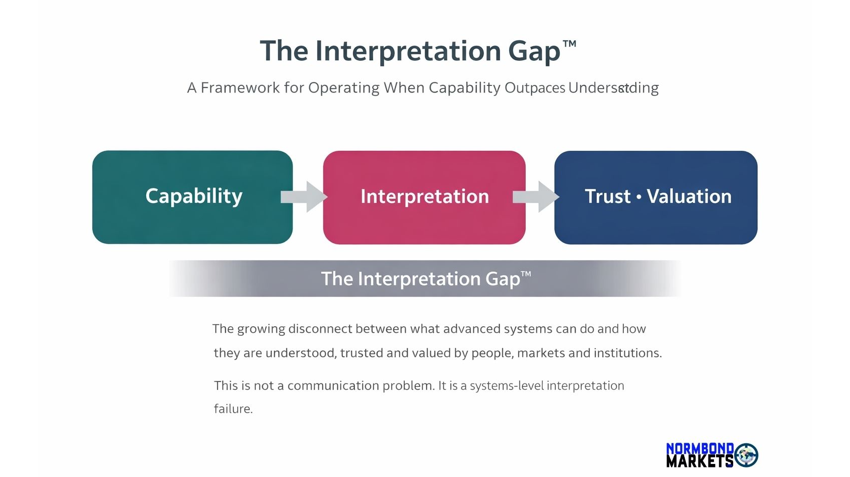 The growing challenge facing advanced organizations is not an absence of capability, but an absence of shared understanding. As AI and complex systems mature, they increasingly outpace the frameworks used to interpret them. This widening disconnect is known as The Interpretation Gap.