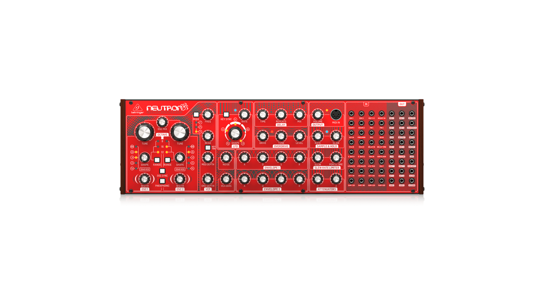 - The 56-point patchbay on the Behringer Neutron breaks free from normalized signal paths, enabling signal routing usually reserved for high-end modular systems.